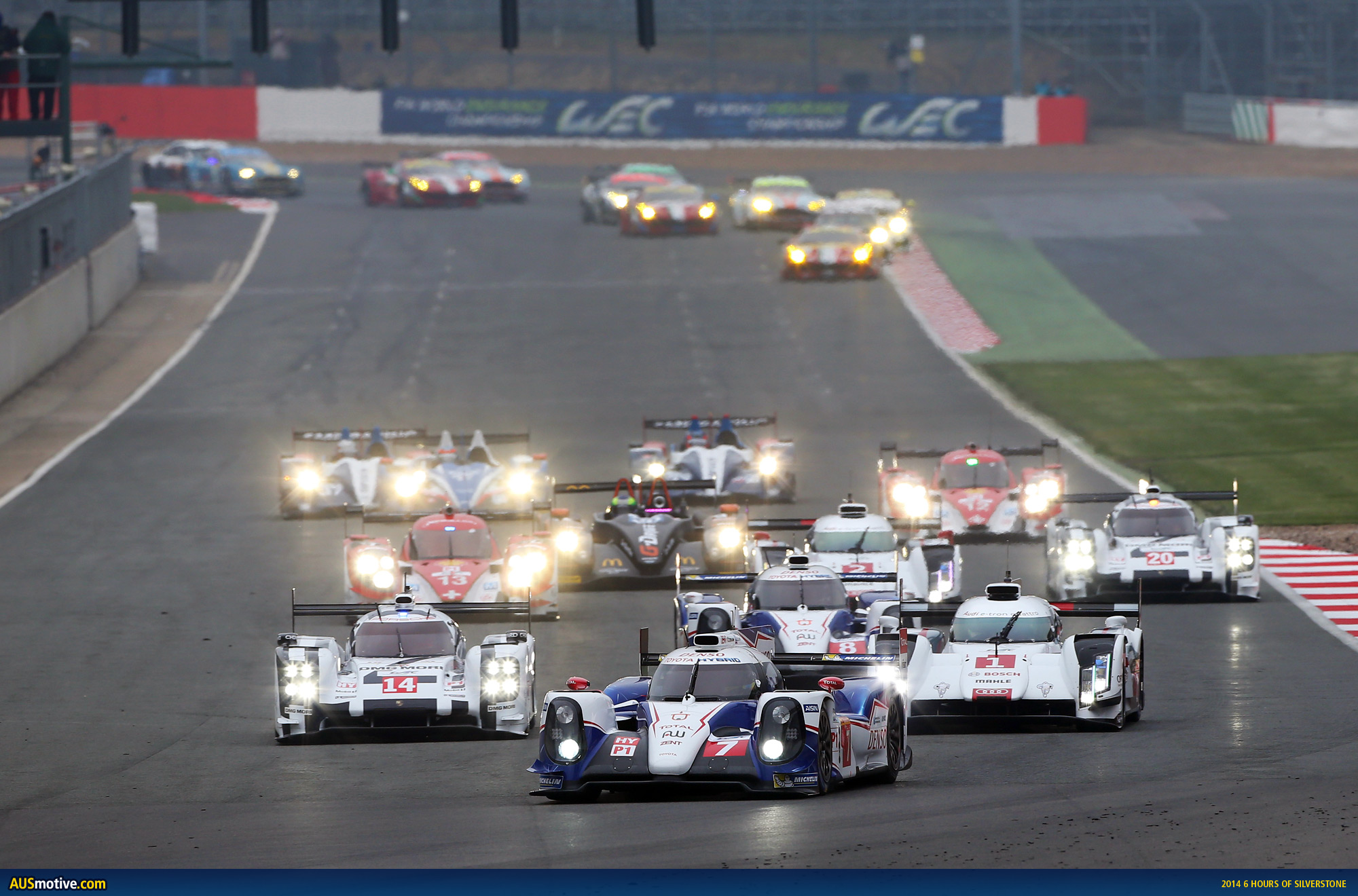 The 2014 WEC season got off to the best possible start overnight after Toyota claimed a dominant 1–2 victory in a rain affected 6 Hours of Silverstone. Two laps behind the winning #8 Toyota TS040 (Davidson, Lapierre, Buemi) was the #20 Porsche 919 (Bernhard, Hartley, Webber). That result marks a promising return to the LMP1 category for Porsche.