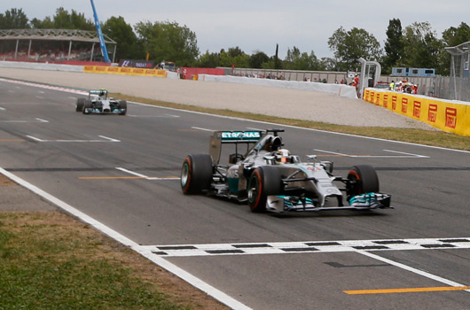 Lewis Hamilton has cruised to his fourth straight grand prix win overnight, taking victory in the Spanish Grand Prix by 0.6 seconds from teammate Nico Rosberg. Cruised and 0.6 seconds don’t seem to go together but in this case they do. A clean start from pole by Hamilton and alternate tyre strategies meant Rosberg was never likely to challenge for the lead until the dying moments of the race.