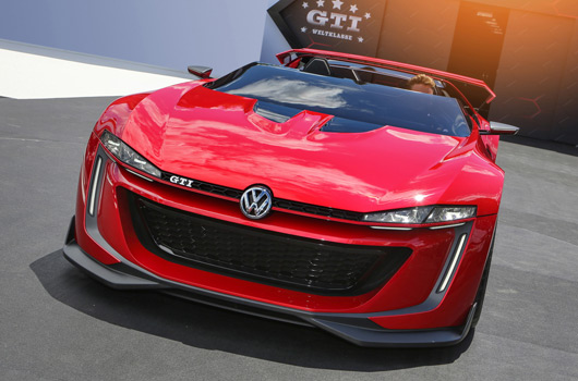 Most spectacular GTI ever. Since Volkswagen designers gave their fantasy free reign in designing the “GTI Roadster” for “GT6” – and were able to overlook production model constraints entirely (e.g. producibility and selling price) – the resulting car is certainly the most spectacular Golf GTI ever! Klaus Bischoff: “The Vision GT project offered a wonderful opportunity to sketch out extreme ideas and design elements of the GTI that are portrayed as vibrantly, dynamically and emotionally as possible. Further development of an unmistakable design and a love for detail reflect the high standard shared by the ‘Volkswagen GTI’ and the ‘Gran Turismo’ by Sony and PlayStation® product brands. We were all really pleased to have created a vehicle that game players can use to get an incomparable virtual impression of the world of the GTI.”