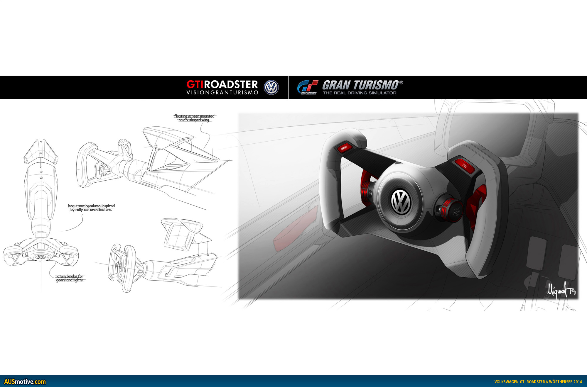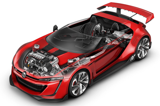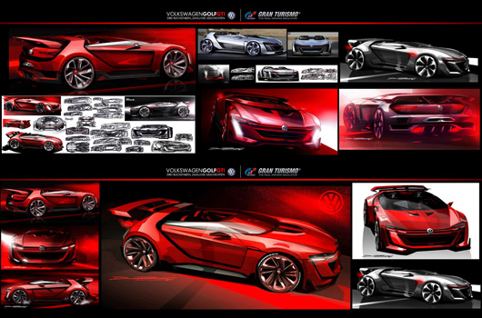 Kazunori Yamauchi is a GTI fan. The Japanese executive has his own stable of super sports cars that includes the icon of all sporty compacts: the Golf GTI. Bischoff and Yamauchi finally chose two designs, which were then developed further. Designers Malte Hammerbeck and Domen Rucigaj were in charge of developing the exterior, whilst Guillermo Mignot was responsible for the interior. The entire development process was realised on the computer; even the 3D model of the vehicle was purely virtual.