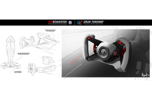Volkswagen and Sony Computer Entertainment. The “GTI Roadster, Vision Gran Turismo” is the result of cooperation between Volkswagen and Sony Computer Entertainment. Klaus Bischoff, Head of Design at Volkswagen: “When Sony Computer Entertainment asked us if we would develop a Vision GT vehicle exclusively for the game to mark the 15th anniversary of Gran Turismo we didn’t hesitate for a moment.” An in-house competition was immediately launched and young Volkswagen designers submitted their designs. The submissions were judged by Klaus Bischoff, Head of Design for the Volkswagen Brand, and no less than Kazunori Yamauchi, Director of Polyphony Digital and Senior Vice-President of Sony Computer Entertainment who is the inventor of the “Gran Turismo series”.