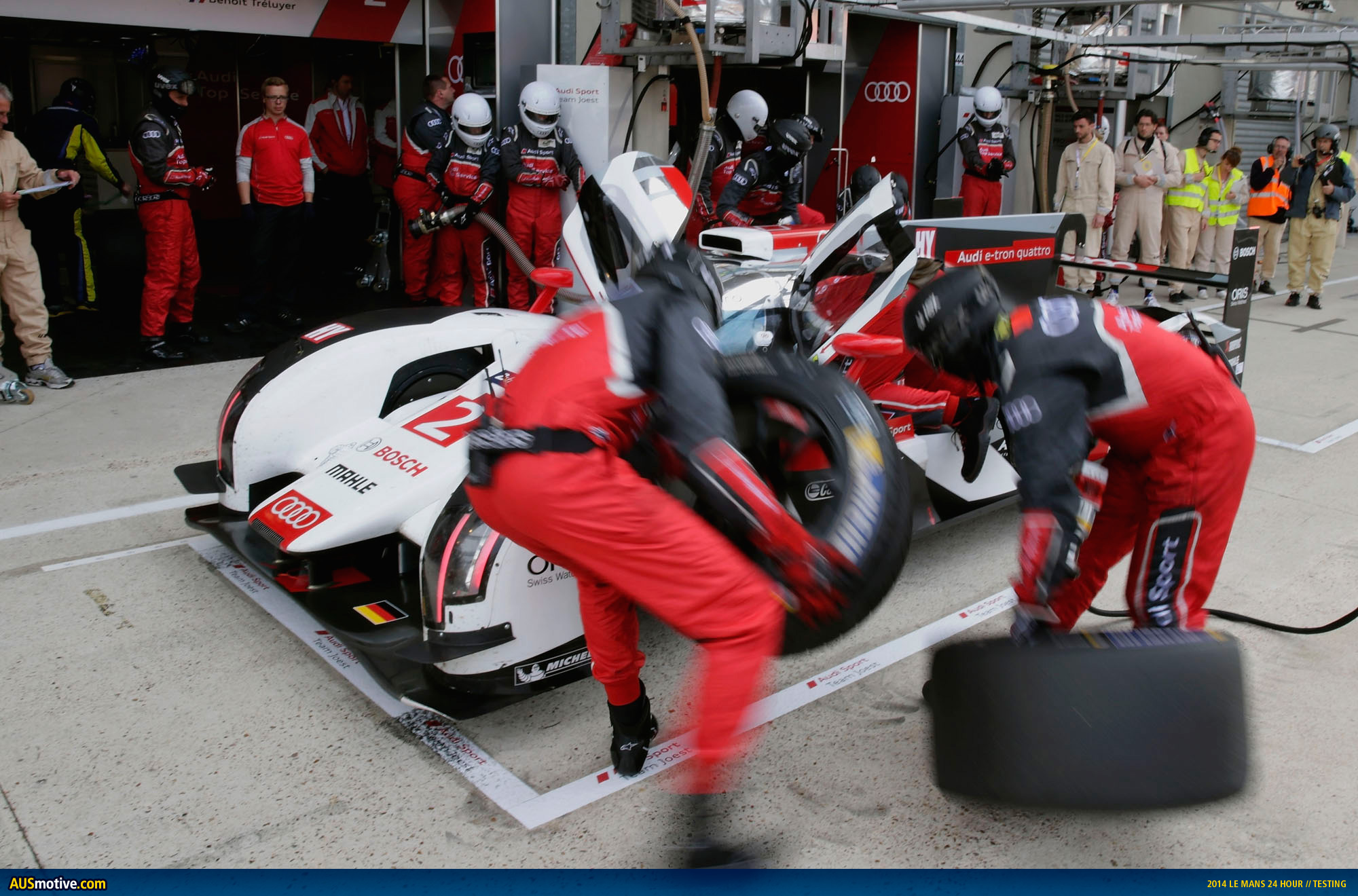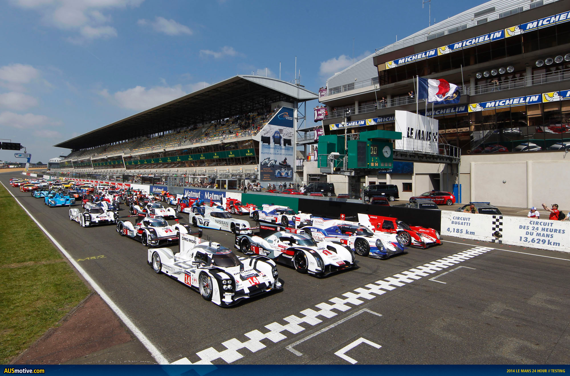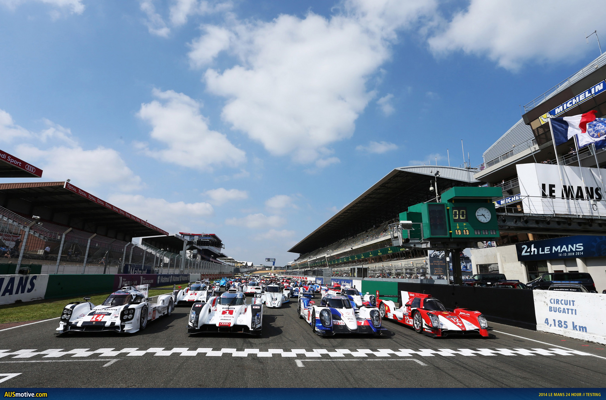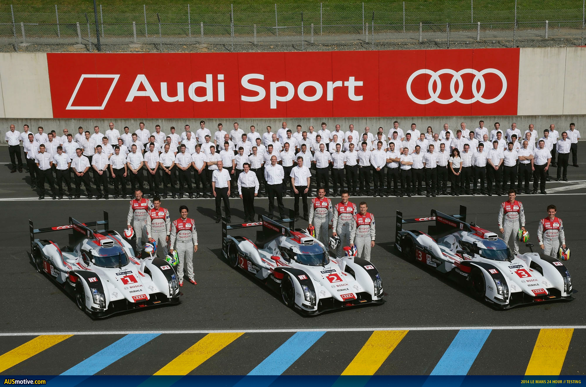 Ingolstadt/Le Mans, June 1, 2014 – Audi intensively used the only testing opportunity for the Le Mans 24 Hours at the ‘Circuit des 24 Heures.’ The three R18 e-tron quattro cars on a total of 284 laps completed an aggregate of 3,870 kilometers before the 82nd running of the iconic endurance race on June 14 and 15.