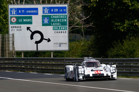 The Porsche 919 Hybrid arrives at the Sarthe