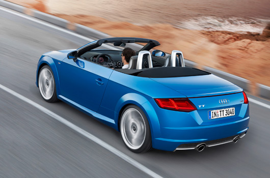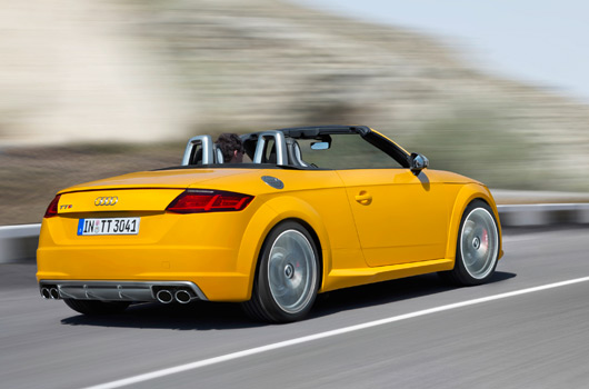 In Germany, sales of the new TT Roadster will begin with the Paris exhibition in October 2014; the TTS Roadster will follow at the start of 2015. The basic price of the 2.0 TFSI is €37,900. The generous standard equipment, which includes xenon plus headlights, air conditioning, and the MMI radio, can be expanded with numerous pieces of sporty, practical, and convenient optional equipment.