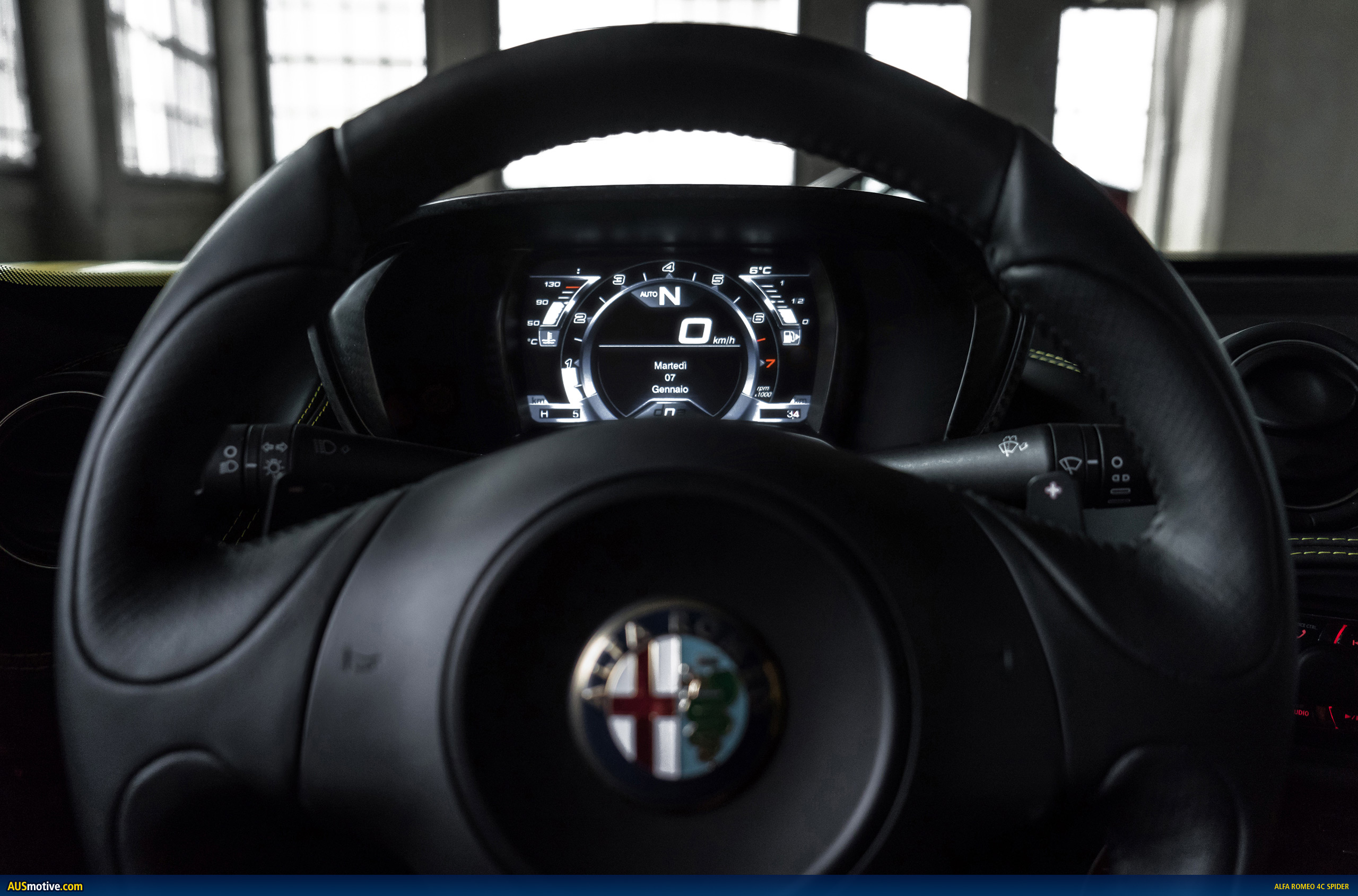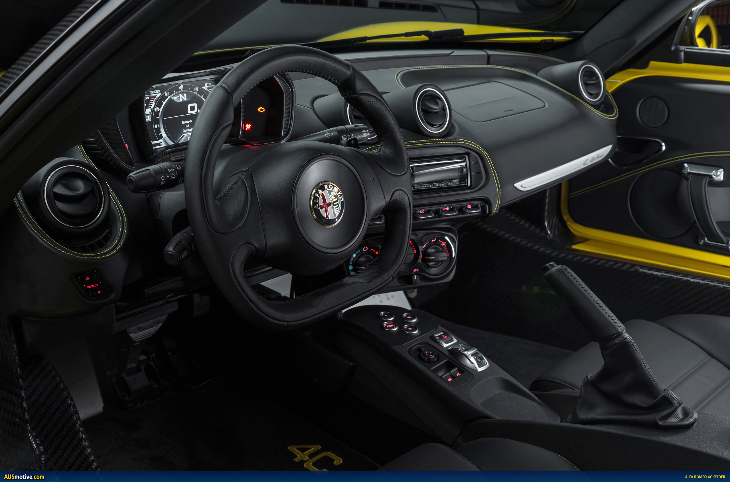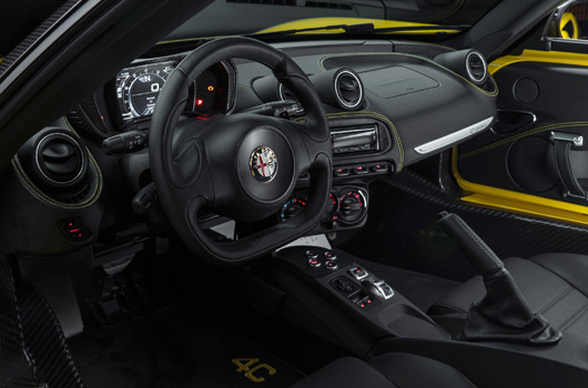 The all-new 2015 Alfa Romeo 4C Spider’s cockpit is inspired from racing, purpose built with only the essential driving components stylistically integrated.
