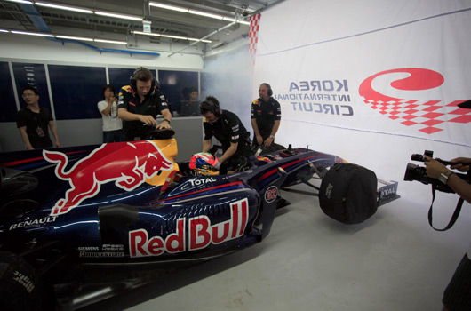 Elsewhere Fernando Alonso spun his Ferrari out of the race towards the end and Sebastian Vettel crashed his Red Bull into the side of Jenson Button’s McLaren. Vettel was able to continue, but was well out of contention due to a drive-through penalty for the contact with Button and another imprecise overtaking move on Tonio Liuzzi (Force India). This contact resulted in a rear puncture for Vettel who needed a the best part of a full lap to limp back to the pits.