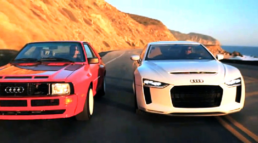 Last week we told you the Audi quattro concept was spotted in Malibu, west of Los Angeles. Now, we can see what they were up to. Audi has released new footage of the concept car and a Ur-Quattro driving along the Pacific Coast Highway. Interspersed with vision of the quattro concept in front of a city skyline there is a voiceover man telling us what’s what.