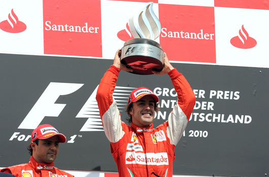 Ferrari’s Fernando Alonso won the 2010 German Grand Prix. Good for him, it was a hard fought victory and if only that lowly team assistant in the bottom left of corner didn’t ruin the photo opportunity above as the Spaniard held the winning trophy aloft. Who is that guy anyway? Has anyone ever seen him before?
