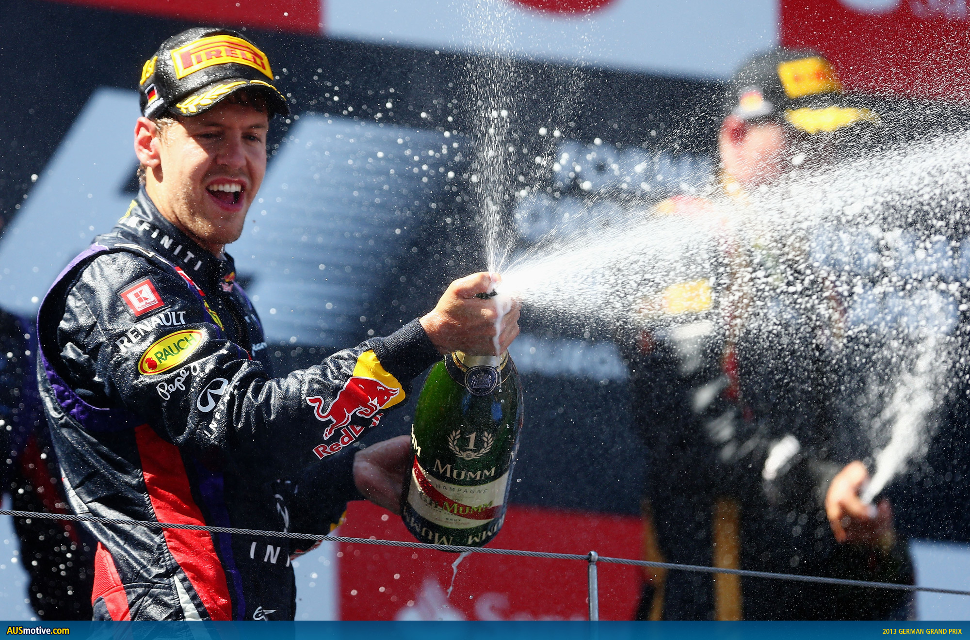 For Vettel it was a controlled race, but behind him there were two bizarre incidents that helped to shape the result. Mercifully, neither included the exploding tyres we saw in Silverstone last week. The first incident ruined Mark Webber’s race. The Aussie made a great start from P3 and challenged for the lead into the first corner. Pole sitter Lewis Hamilton (Mercedes AMG) was swamped by the two Red Bulls and Vettel took the lead.