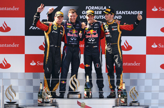 Close behind the Red Bull ace was Kimi Raikkonen (Lotus) who finished strongly, just one second adrift of Vettel. The final podium position was taken by Romain Grosjean (Lotus).
