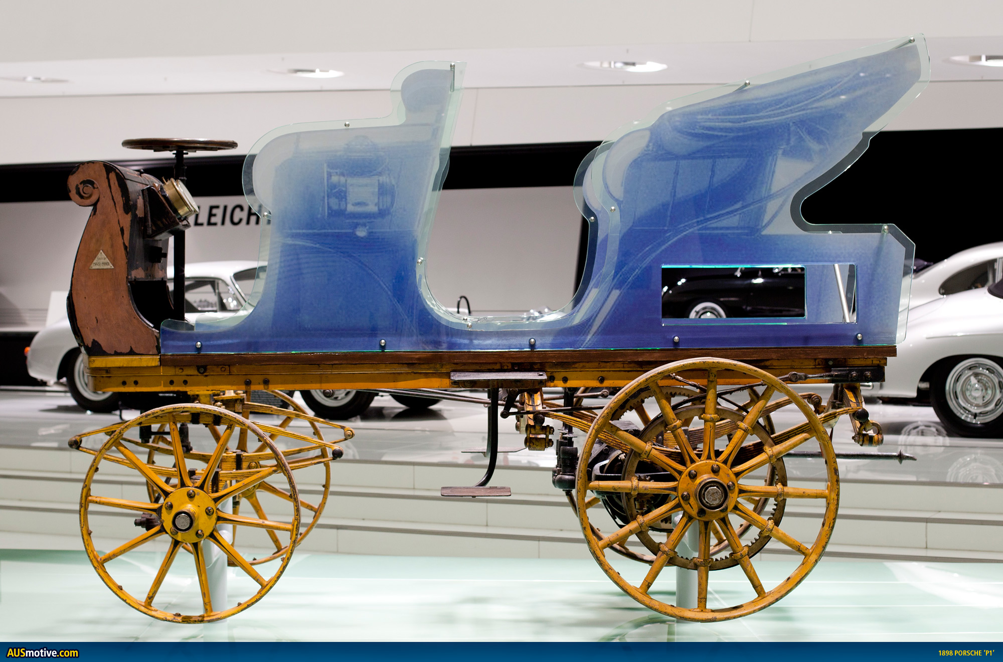 Known as P1 for short—Porsche number 1—it is the first automotive creation of Ferdinand Porsche and dates back to June 1898. The car was one of the first registered in Austria and had its first real test in September 1899 when it was entered in a 40km race for electric vehicles held in Berlin.