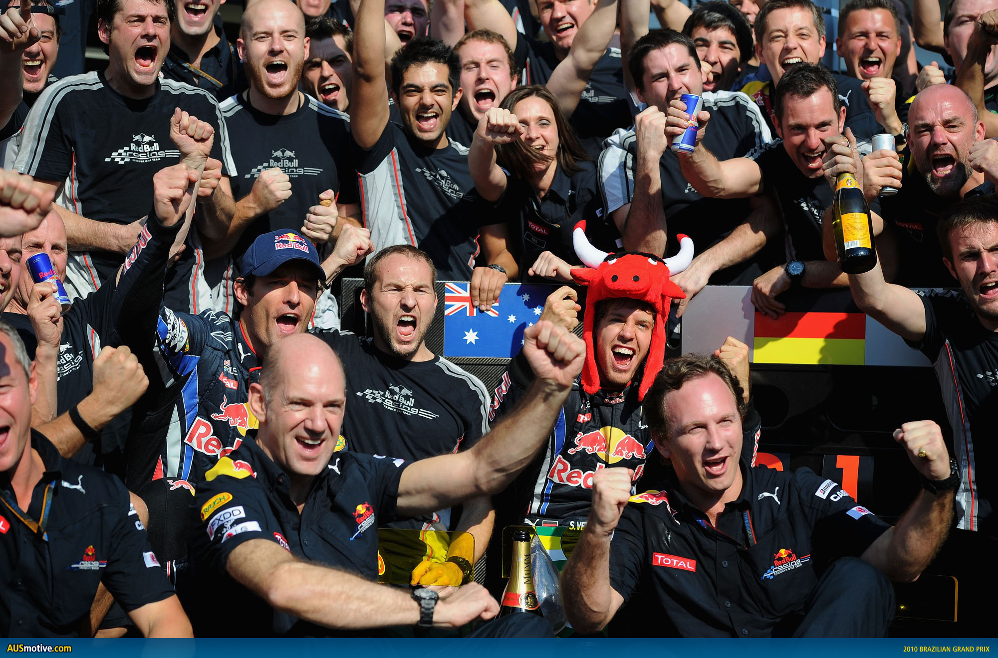 To honour Red Bull’s success in the 2010 Constructors’ Championship and the genius of Adrian Newey’s RB6 here is their post-Brazilian Grand Prix press release, accompanied by a short video montage from BBC TV. Of course, there’s more images from Red Bull’s celebrations in the Brazilian Grand Prix in pictures article.