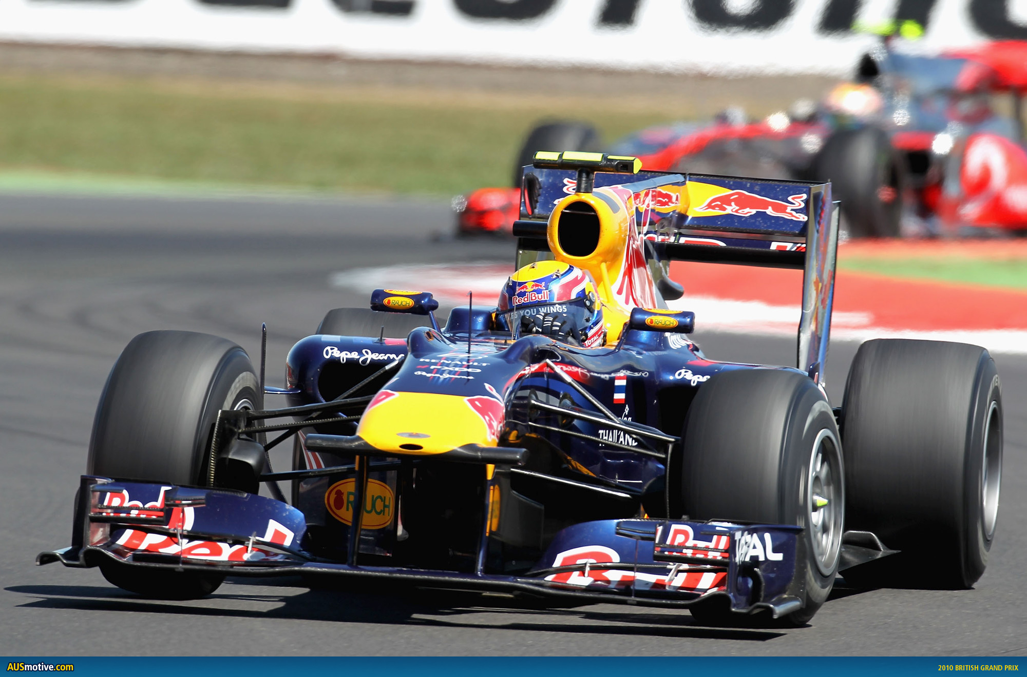 Mark Webber has won his third Grand Prix of the 2010 Formula One season at Silverstone this evening. Webber started from second on the grid, behind his Red Bull Racing teammate Sebastian Vettel, but was able to edge ahead of Vettel into the first corner.