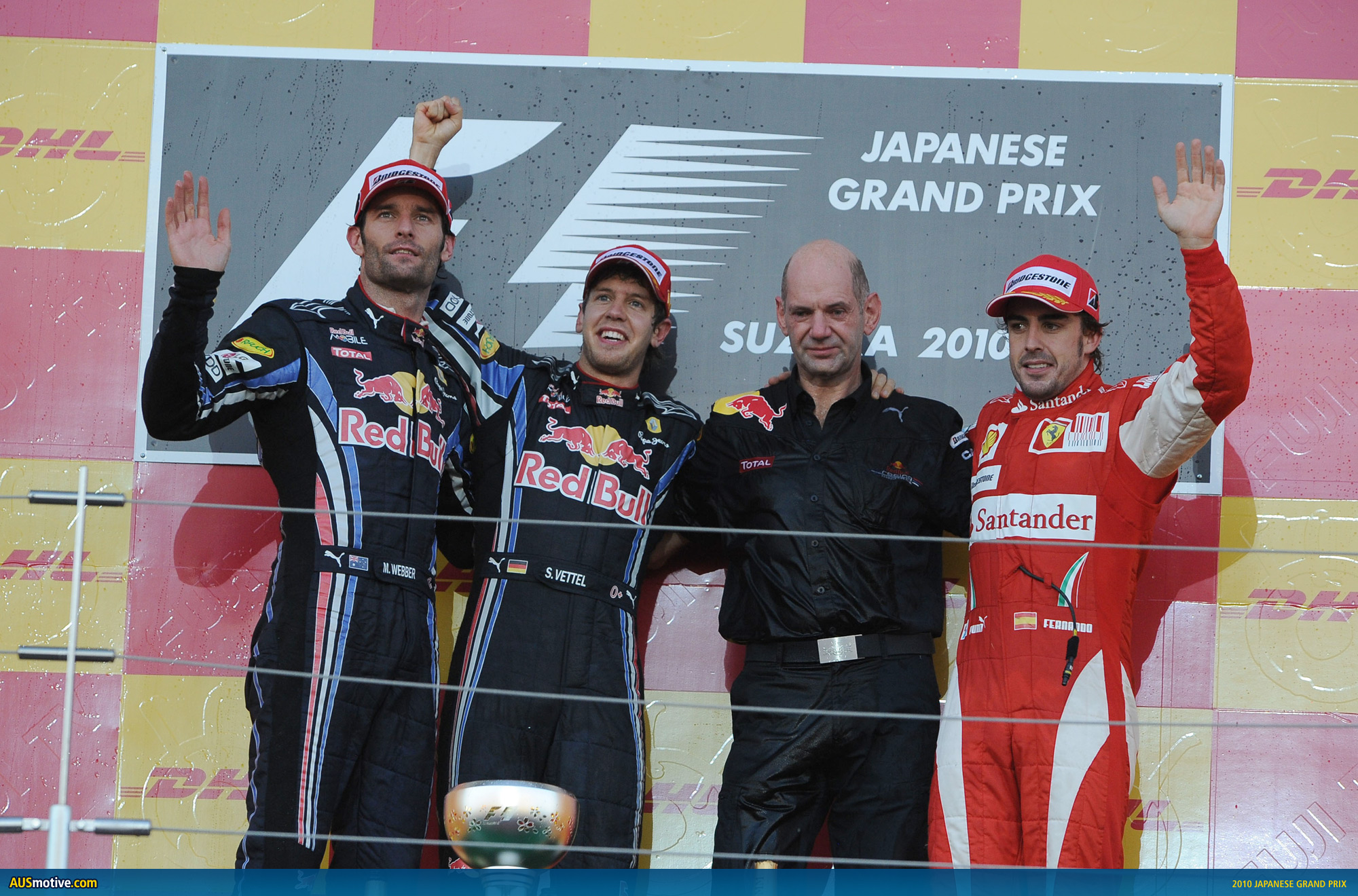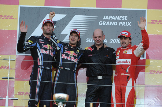 Red Bull Racing returned to the victory dais at Suzuka today with Sebastian Vettel claiming his third race win of the year. Constantly at the top of the time sheets, Vettel was the dominant man all weekend and started the race from pole position. Teammate Mark Webber completed the Red Bull Racing domination by securing an comfortable looking second place. Ferrari’s Fernando Alonso took the final podium position.